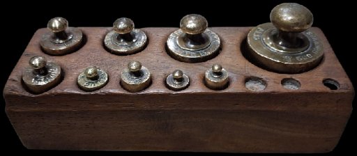 gewichtenblok met gewichten in messing.