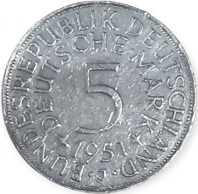 WEBSHOP › medailles/munten/bankbiljetten › Duitsland 5 mark 1951.