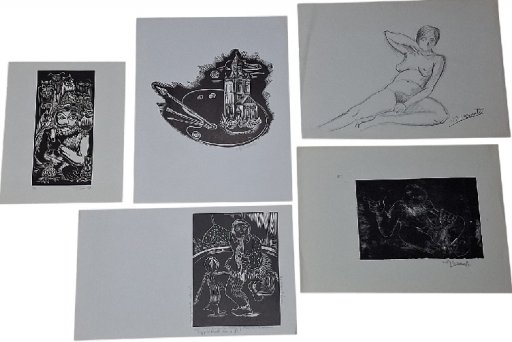 waaronder 1 naakttekening. niet ingekaderd geweest. formaat : 27 cm op 21 cm tot 28 cm op 36 cm. in goede staat. allen gesigneerd. verzending mogelijk