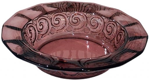 28,50 cm diameter. 7 cm hoog. diep paarse kleur. periode : 1930. verzending mogelijk