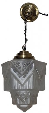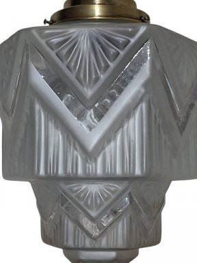in zeer goede staat. periode : 1920-1930. hoogte glazen lampenkap : 24 cm, breedte lampenkap : 24 cm. totale hoogte lamp : 58 cm. vernieuwde electriciteit. geen verzending, afhalen te 3120 Tremelo na afspraak