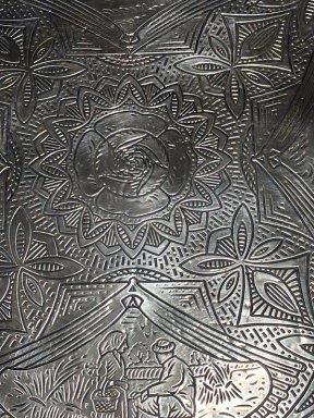 getorseerde poten. in goede/originele staat. deuk in blad (zie foto). 70 cm hoog. 60 cm diameter. geen verzending, afhalen na afspraak te 3120 Tremelo
