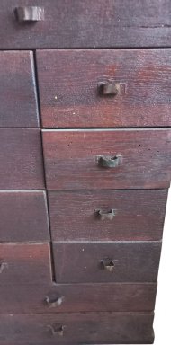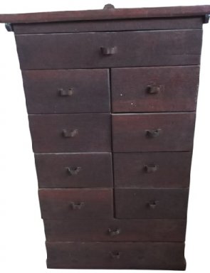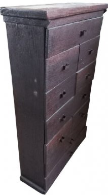 in eik en grenen. volledig origineel en ongerestaureerd. kan staand geplaatst worden of opgehangen. 58 cm hoog, 33 cm breed en 11,50 cm diep. verzending mogelijk