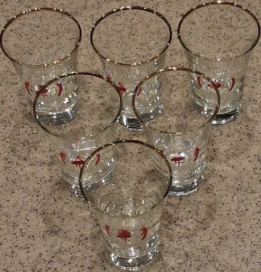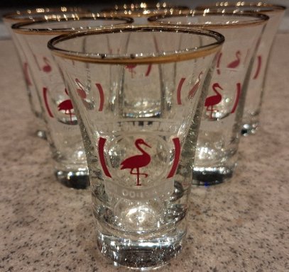 WEBSHOP › reclamevoorwerpen/merken › 6 Distillerie De ooievaar jeneverglaasjes