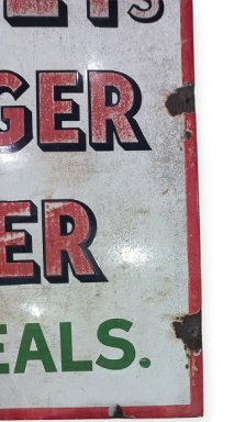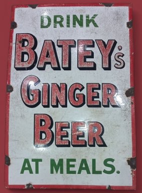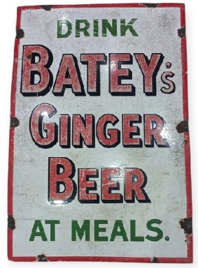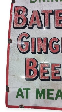 begin 20ste eeuw. 76,50 cm op 51 cm. in emaille. geproduceerd rond het begin van de 20ste eeuw. Batey's ginger Beer werd opgericht in 1886 en de fabriek bevond zich in Londen. Chromographic Enamel Company Limited. geen verzending, afhalen na afspraak te 3120 Tremelo